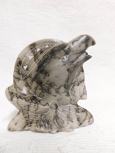 Ceramic horsehair eagle with shield serves both as a crest and an acknowledgement of the power of the eagle as messenger to the Great Spirit and protector to us all. Etching will vary.
