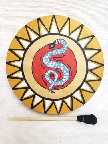 Cherokee Painted Buffalo Drum with Snakes