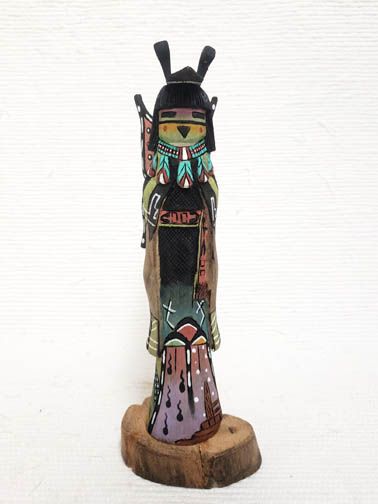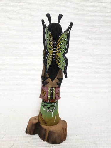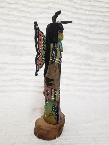 Hopi Carved Butterfly Maid Sculpture by Wally Grover. The Butterfly Dance is a harvest thanksgiving dance, for the corn crop & features dancing by young Hopi maidens wearing elaborate headdresses.