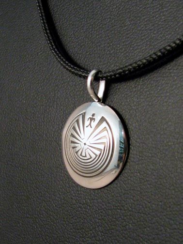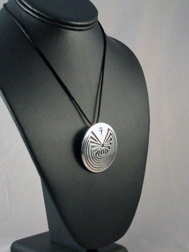 Navajo Man in the Maze Pendant by Beverly Mannie. Sterling silver pendant is done in deeply cut overlay. Helps understand meaning of life.