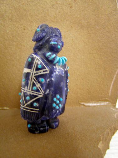 This beautiful Zuni Corn Maiden, complete with her hair in butterfly whorls, was carved from lapis with turquoise accents.