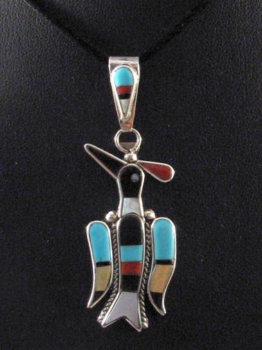 Native American Zuni Made Inlaid Thunderbird Pendant by Lynette Laiwakete